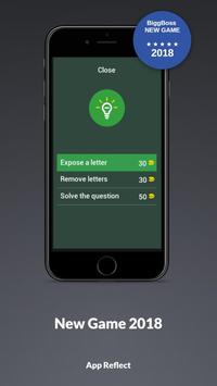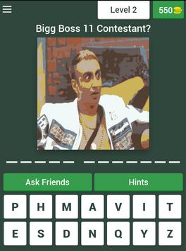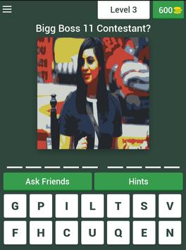This game is one of it's kind. The gameplay is very simple, you have to guess the Bigg Boss contestants names in return you will earn coins. You will get hints in the game to get you through levels. Use your earned coins to get you through hard levels.