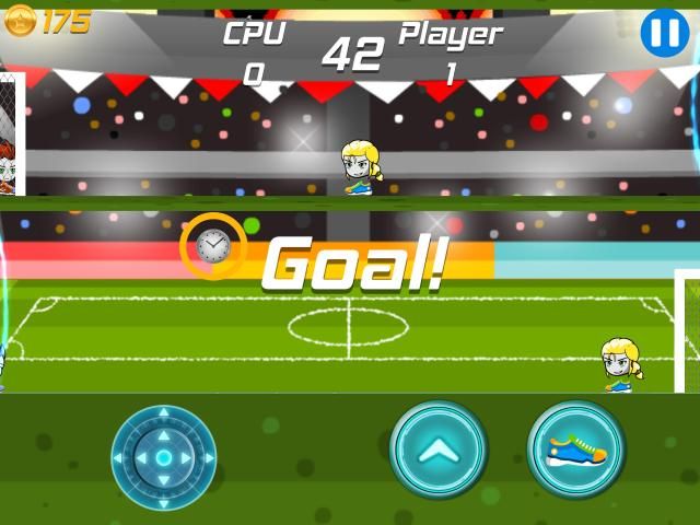 Play soccer with one foot footballers, use your head, foot, and soccer jumping skills to send the ball in this unique two floor style soccer game to send the ball in the opponent's area and win the match! If you time your jump properly you can get a great head ball shot, or also called headshot. If you kick it properly you will get a big shot on the enemy soccer net! Get ready to enjoy this one foot game and watch the bobble heads jump around and become the top soccer league!