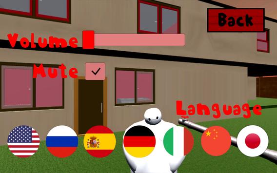 One day you discover some changes in the behavior of your Big Neighbor Hero Baymax! Often you see strange Baymax with big bags near his house! Sometimes you hear some strange sounds, like laughing of baymax and noises of fighting. And one dark night the despicable big neighbor hero drags out of his house a bag with something that terribly reminiscent of the baymax body. It becomes clear that something terrible is happening. You can not stay away-you need to get into the baymax big neighbor's house and find out what's going on! However, this will not be so easy! But Don't be scared! Just say " Big Neighbor Hero, I am not afraid" or "Hello, Baymax, you are a bad neighbor" and challenge with him!