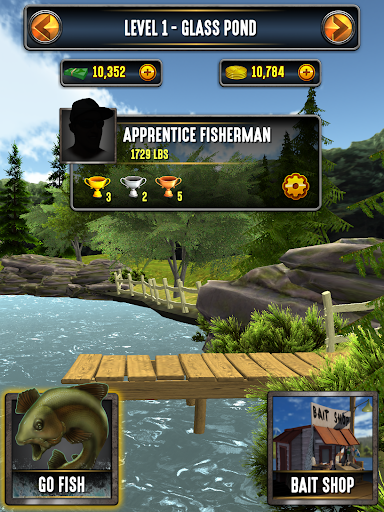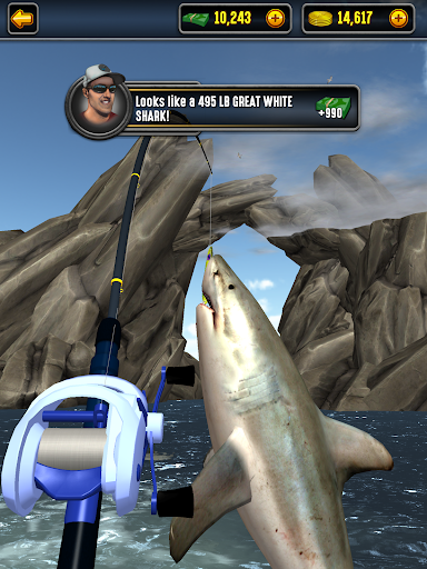 Explore diverse locations including Glass Pond, Placid Bay, Frost Lake, and Devil's Canyon. Win trophies, earn currency, and unlock better equipment. Become a Pro and you'll pursue the biggest trophy fish, including great white sharks, marlin, tuna and other species!