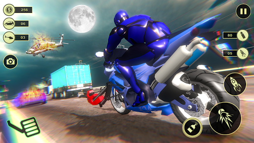 In this extreme real attack batmobile bike racing simulator has lots of stunt and fun absolutely passes your enjoyable time. Do you love this superb real bike 3d attack racing game? In bike race simulator you become a legend of the highway track and prepare for the classic bike racing missions. Become a best bike racer and playing such a type of new generation bike riding as yet. In this Real fast bike attack traffic racer riding game you will have to finish the opponents, gangsters, bad guys, thieves with your hammer, gun, missiles and start this race properly.