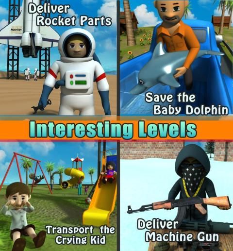 - 30 Challenging Transport levels with interesting stories ( Save the dolphin, Ride the Granny )