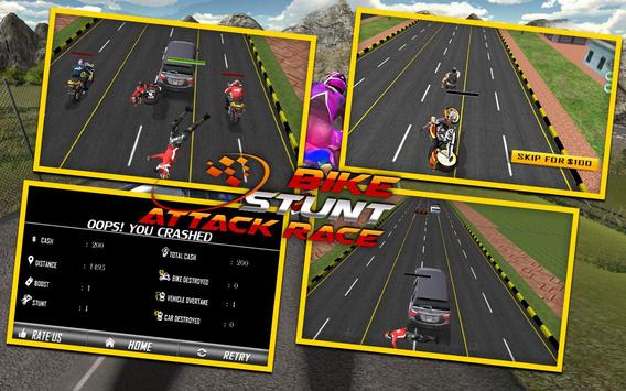 Bike Stunt Attack Race 3D is an addictive, dynamic and challenging bike racing and fighting game with different amazing environments and tracks for bike game lovers to enjoy ultimate experience of moto bike racing.