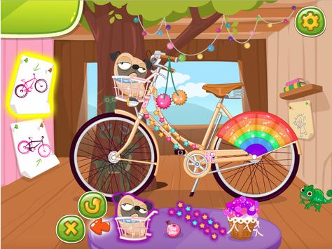 Add colorful stickers and then why don’t you pick the cute pug to be your companion? When you are happy with the bike go ahead and dress up this cute girl in the most colorful and fashionable outfits.