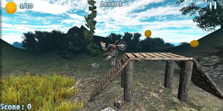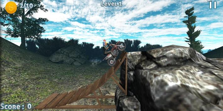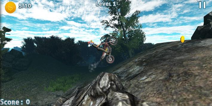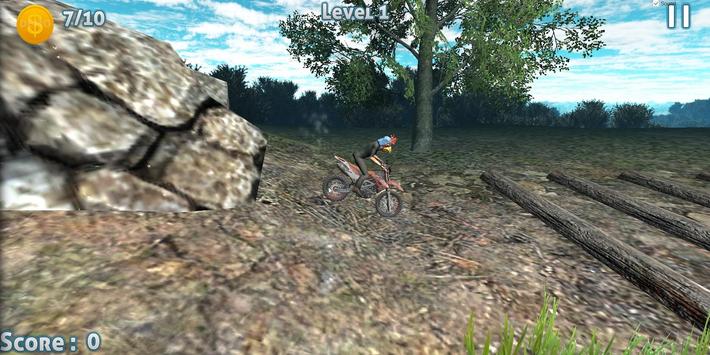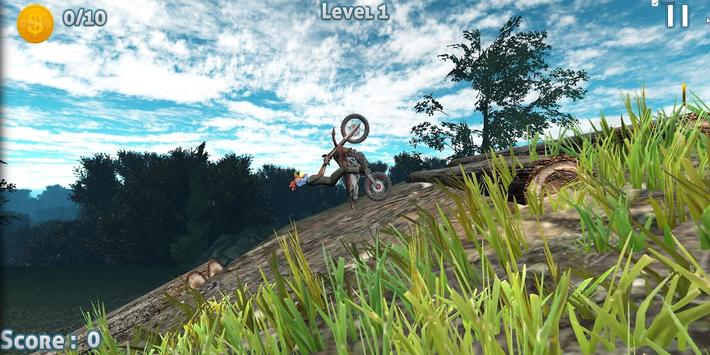 There is multiple trails in this game, climbing trails, falling trails and bumpy trails, in start of the game you have to learn driving with dirt bike, avoid slipping & over speeding on start. Drive carefully on water shores, its difficult to control bike on water shore.