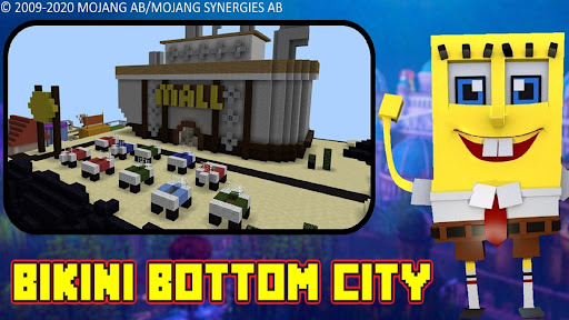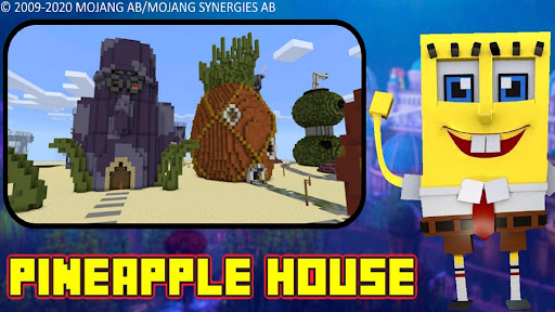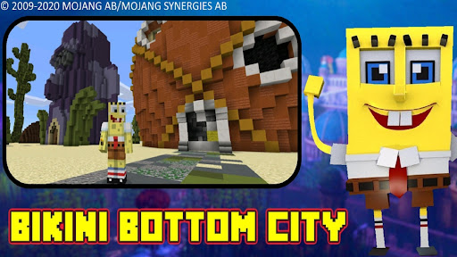 This is a pe craft game survival map based on the famous Bikiny bottom city. This craft map is based on crafting and cubic blocks in voxel handheld games.You can build and create - in the big city. Now you have the opportunity to explore this famous city in the pixel cube world. You have the opportunity to live in pineapple house or craft your house or shelter from cubes, fight or interract with other members of bikiny city, assemble your team and explore the areas of the cube city. Building houses game with FPP (First person in perspective). Great game for boys and girls! Be creative in this blocky lightweight game. You can go the fast crasty crab food restaurant with your friends in the game. Together with your team you will need to mine, resources, food, water, build all you want and need in this craft map from the blocks.