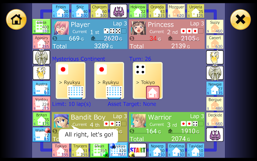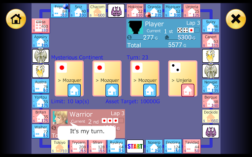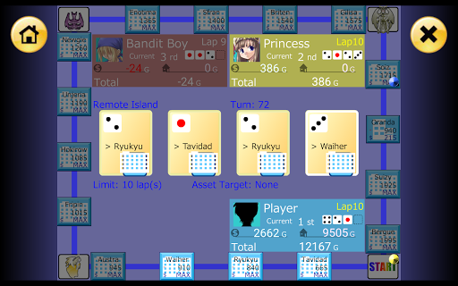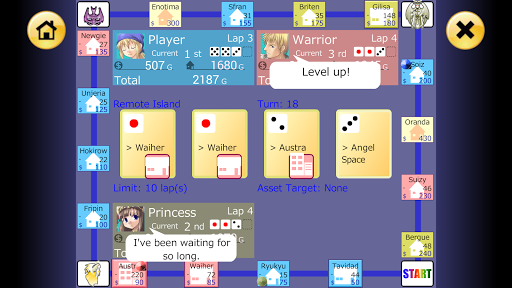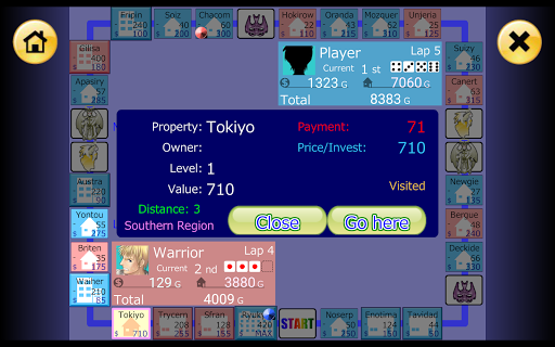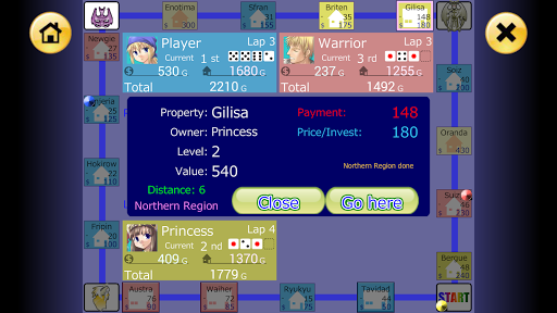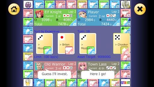 Buy lots of Properties, raise your rank through Investments, and collect Rent from your opponents!