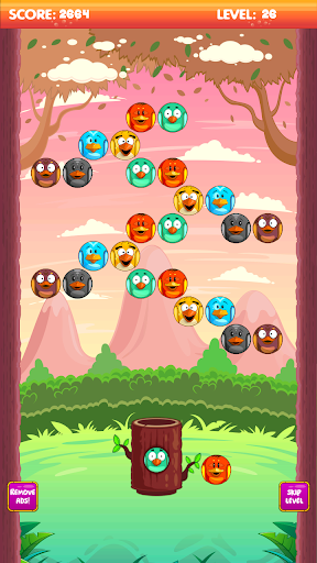 Birds bubble shooter is absolutely free game and it will entertain you long time with more than 1000 different levels - simple at the beginning and more and more difficult after. Birds Bubble shooter is suitable both for kids and adults because of pretty graphics and catchy design and it improves reaction, attention and logical thinking.
