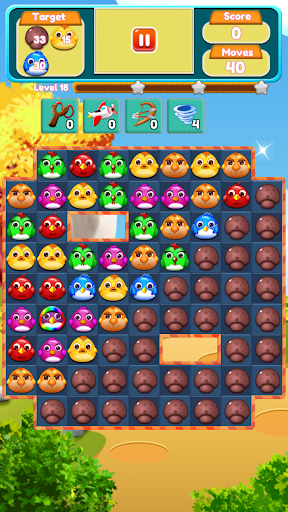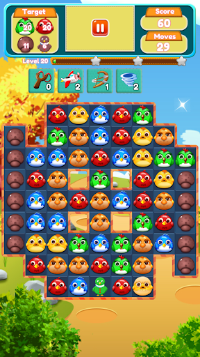 Wondering how you can start playing the game? Birds Town is a match-three or more puzzle with a little twist. Here, in addition to matching three or more birdies of a similar kind with a definite number of moves, you will also have to clear some other targets in a level. However, there will be an ample number of hints to help you through the challenges. And whenever you get stuck, a hint will flash on your screen to get you going in the game. The puzzles in Birds Town will become increasingly difficult with the increase in game levels.