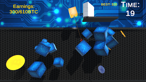 Collect the target amount of crypto assets by the end of the stage. If you don't meet your goal by the end of the level you need to start over and all your upgrade will lose.
