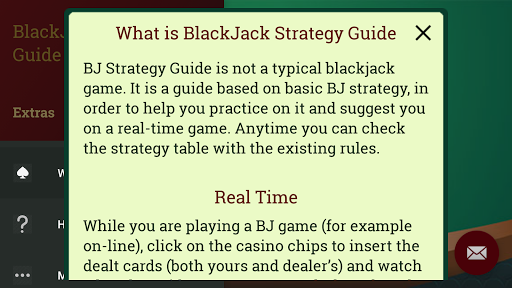 BlackJack Strategy Guide is designed to help you learn and practice Blackjack strategy, based on the basic strategy. Customize the game rules and optimize your chances of winning using the Real Time guide, fast and simple!