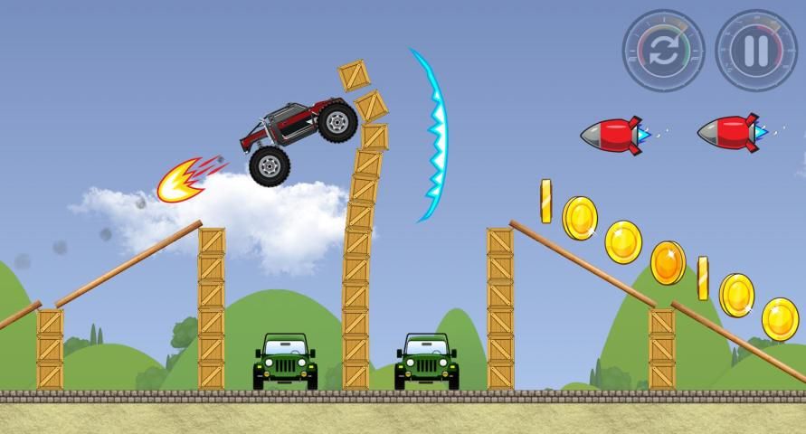 This game includes many different levels the player must override,in the first he has to make a team and start to race, the obstacles are overcame by buttons so that he can control the jump of his blaze truck machines so as not to fall off.