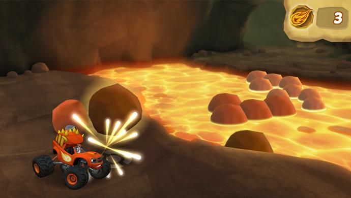 Zag went to practice in the valley of the Dinosaurs and got stuck in a marshy swamp. Almost all the wheels have disappeared into the mud and there is no way to get out. The outbreak is worried about the friend and is going to get him out of the trap in the game Speed Into Dino Valley, but he does not have enough power. There is a way to strengthen the machine - to collect fireballs of power. To do this, you need to participate in races, fly across the sky and build a bridge of stones through a fiery river. Start from the bridge, for this purpose, Flash will attach a special device, which will help to beat huge boulders and send them to the river. Next, go to the race through the valley, collecting balls and breaking the multicolored crystals, avoiding dangerous obstacles. Flight is also unsafe, it is necessary to avoid mud bombs and birds. If you collect enough balls, Zag will be saved. Now Blaze and AJ need your child’s help saving Zag in the FREE Blaze & Monster Machines game!