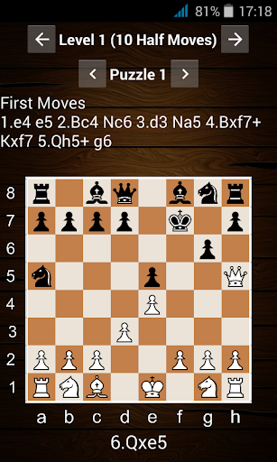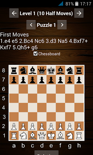1000 puzzles organized according to the number of half moves or of the pieces on the chessboard. All puzzles are fairly easy to solve even for a beginner.