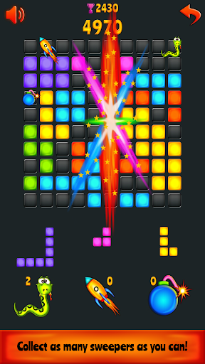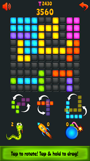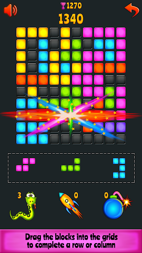 * Drag and pull the blocks shown below the board with your finger and place them on the board consist of 10x10 grid.