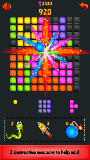 * Classic mode: Drag the blocks and drop onto the board to fill rows and columns
