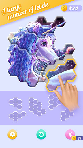 You will have a great leisure time by matching pieces and creating amazing art pictures (flowers, animals, unicorn, constellation, characters, and landscapes, etc.) in your hand. All you need to do is to unlock all the art images/pictures by collecting enough "Stars". Also, you can challenge to test the limits of your brain to solve all jigsaw puzzles without using "Hints".