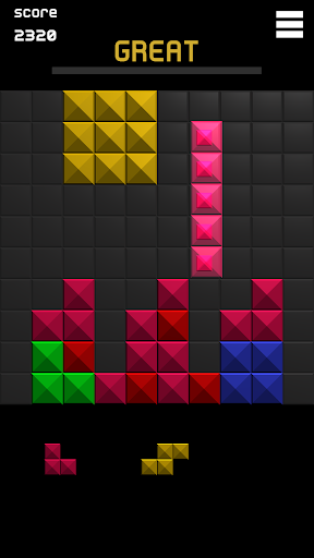 The objective of the game is to place the pieces on the board so that they form solid horizontal or vertictal lines with no gaps. When you form a solid line, it will disappear. When you fill several lines, the board will shake and all the blocks will fall down making space for new pieces. The gameplay is simple, but very fun and addictive. Give it a try!