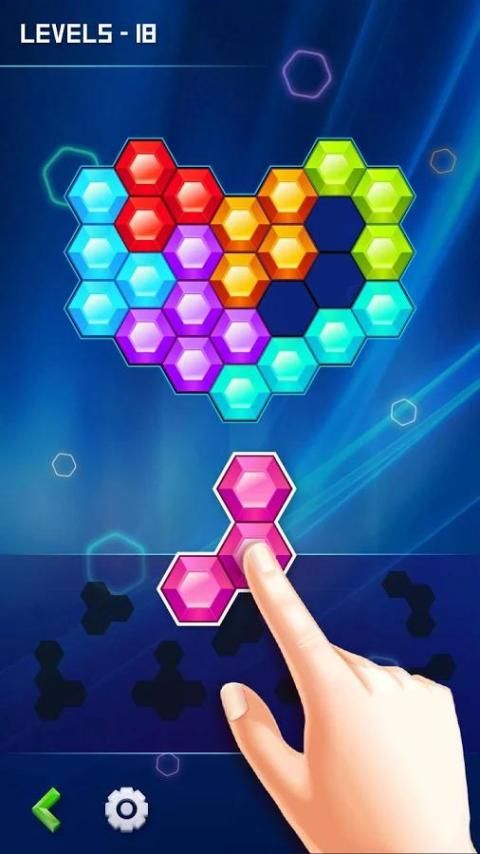 Drag and drop blocks to fill up the Hexa to win and collect stars to unlock Levels.
