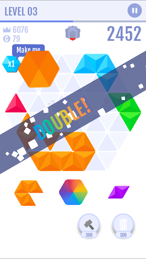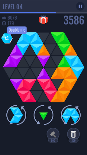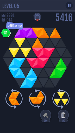 This is a new Block puzzle game with new style and new gameplay. It is a creative from triangle and hexagon to make puzzle game.
