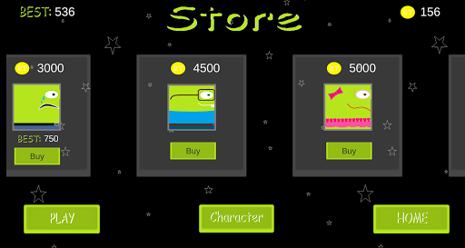 Earn coins and high scores to unlock different looking characters to travel with.