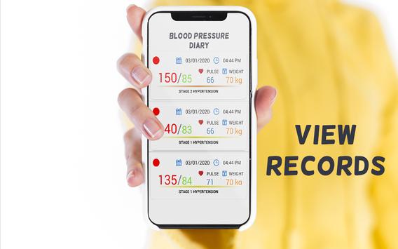 Control your blood pressure with multiple build-in features like measurements analysis, statistics, graphs, comprehensive reports your doctor will love and many other tools to analyse high or low blood pressure. This application give you information about how good your blood pressure is and you cannot measure your blood pressure and pulse rate. All result values are only an examples. The app lets you log blood pressure readings, view trends & send reports to your physician or professional healthcare provider. By entering a memo in the recorded data, you are able to record thought at the moment of measurement. This app is created so that you can calculate the average of your blood pressure and pulse values and you cannot measure your blood pressure and pulse. By using any bmi calculator you can find whether you are overweight, under weight or normal weight. Control your weight if you are overweight because it can cause different disease like kidney, heart diseases hypertension. Blood pressure varies during the day. In a situation of stress or intense emotion, it rises naturally. When the blood pressure remains high, beyond 14/9 cmHg, we talk about high blood pressure.