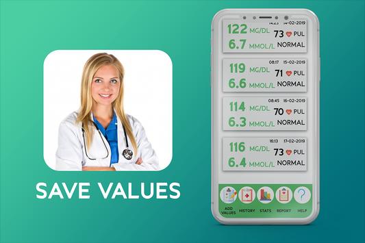 An exclusively designed application for health conscious and diabetes patients. Launch application save values and later press save button. The application will save the entered values to later be viewed in more logical form that will assist the users to take care of their health in a much better. Blood Glucose and Diabetes patients are advised to take the Blood Sugar readings every day from an authentic device like Blood Sugar Health Monitor or Digital Blood Sugar Glucometer.