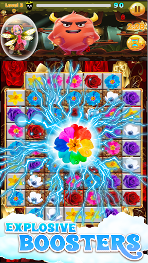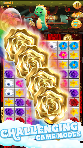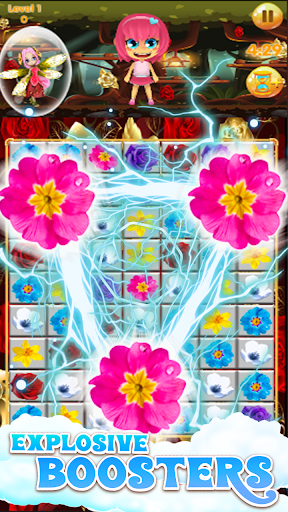 For having fun playing with flower buds and make them bloom you need to match 3 of the same blossom flowers by creating lines or rows of the same buds color , if you Match more than 3 blossoms you get Awesome Blossom lighting bonus of blooming flowers that will crush a full row or line of bloom to clear the flowerbeds if that is the level target.