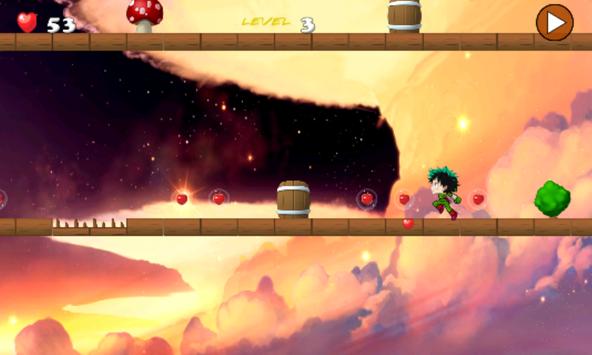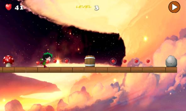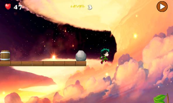 All you have to do is to collect the maximum number points in order to participate in the final battle. But there are many obstacles. You can avoid them by jumping over. Tap screen to make Deku jump