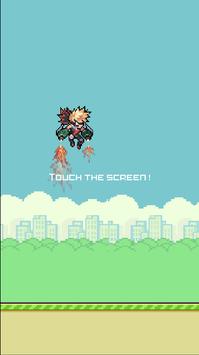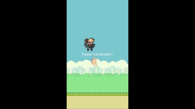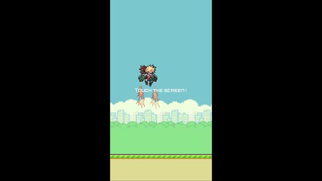 Your task is to control and keep the Bakugo away from hitting the stone pillars and not falling to the ground. You need to touch the screen for the Bakugo to Jump its Bomb and raise the altitude,