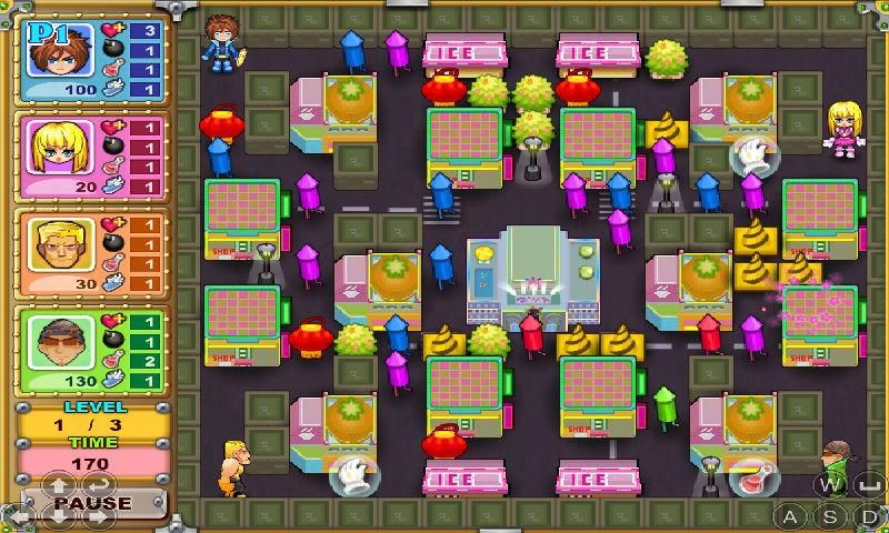 Bomb It is an arcade game in which you throw bombs at all around to explode everything. You are a robot in the game. And you can select one player mode or two player mode. The aim of this game is to explode as more as possible within time limit. And different levels have different background. You and your three fellows will destroy all by bombing. In level one, there are many ice creams blocking your way. At the center of the map is a big cake. Try to eliminate all ice creams as soon as possible by bombing. After the bombings, there will be many special items on the way, such as shield, liquid medicine, boots, bells, grenade, and supernatural gloves. You can collect them to gain bonus points and extra ability. In level two, all around is strawberries. There is a big strawberry tree at the center. You must explode all strawberries by throwing bombs at them. Do you want to know more? Join now.