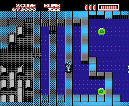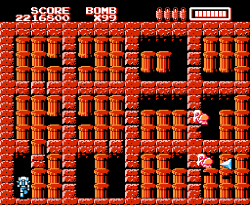 Bombom King's energy level will constantly deplete because he needs electricity to function, since he is a cyborg. Being attacked simply speeds up this drain on his energy. Bombom King can carry up to four reserve Life Pods, which will be used to refill his energy level whenever it drops to zero. If it drops to zero while he has no Life Pods in reserve, it's Game Over. Bombom King can recover energy either by collecting Life Pods, using Energy Capsules, or by completing a period.