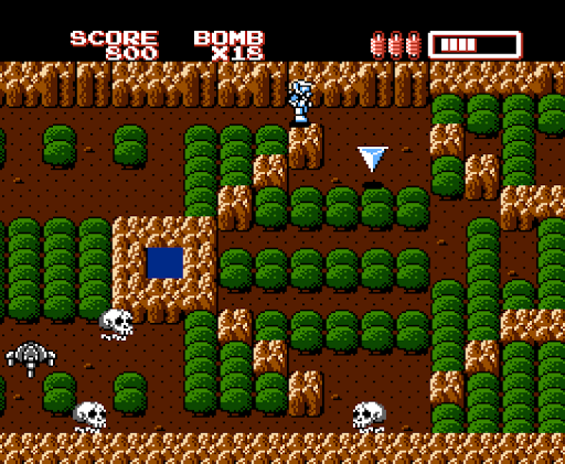 Bombom King can use bombs by pressing the B Button. Bombs cause massive amounts of damage to enemies, and destroy all "temporary" blocks within one space of them.