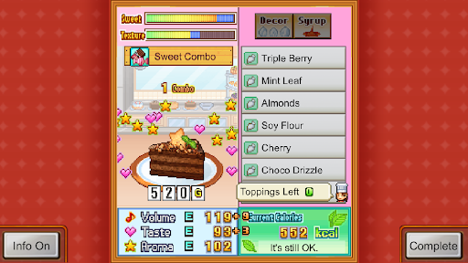 Persevere in the path of the pâtissier to eventually unlock secret features like the "Hall of Fame Challenge," in which you'll need to fill a flurry of fast orders, and "Recipe Lab," allowing you to step up the quality of your sweets.