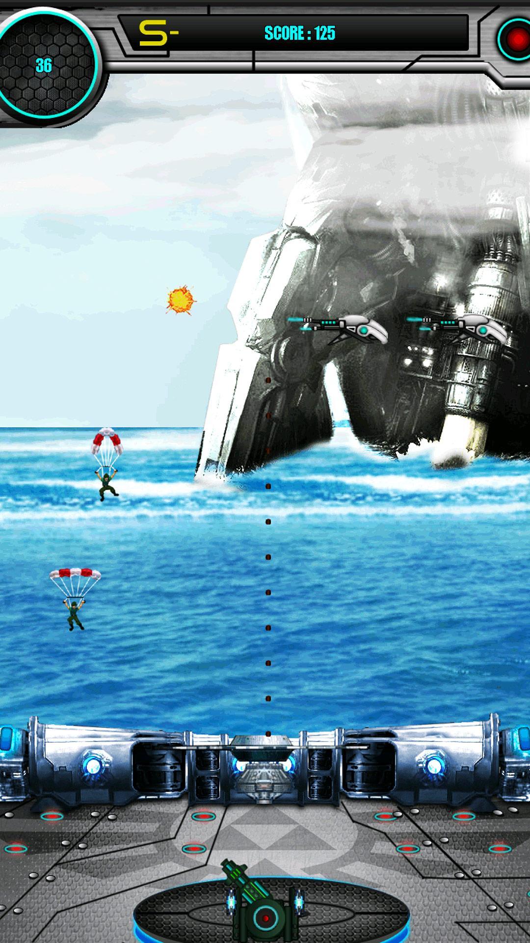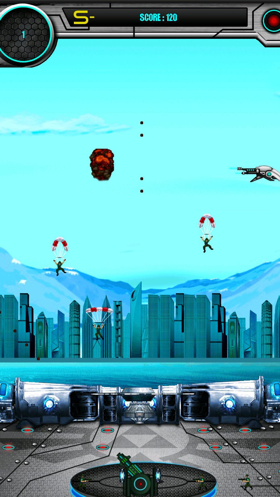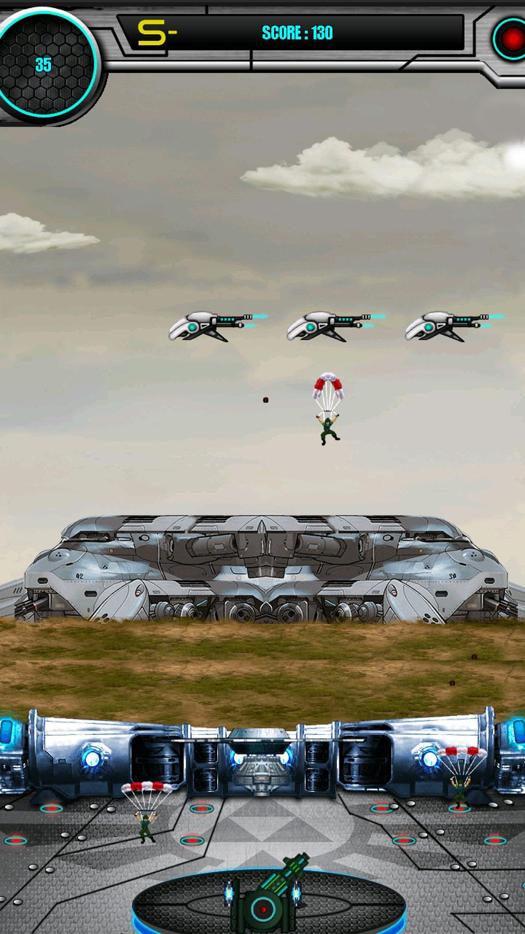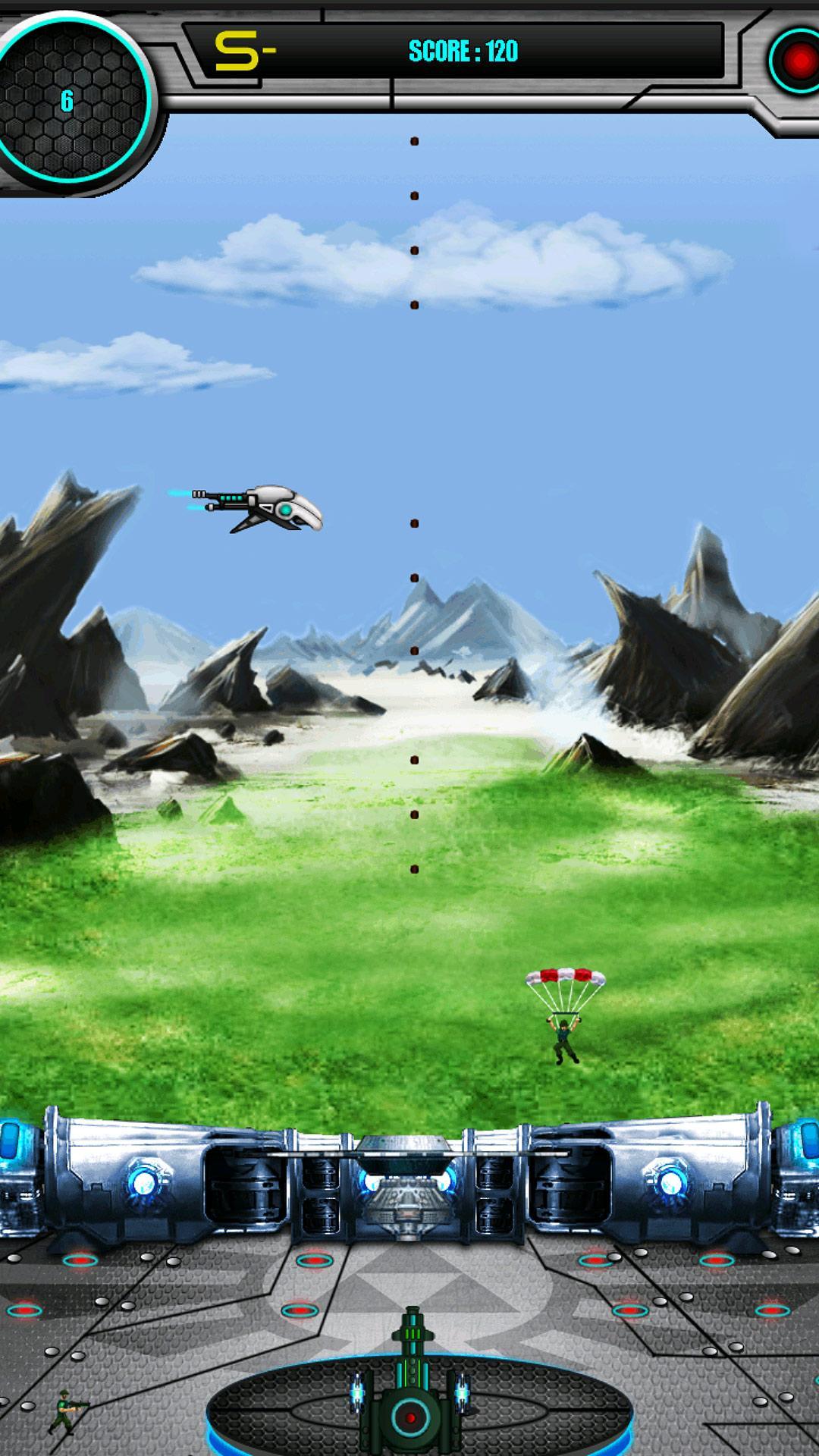 Use the tank and shoot down invading Parasoldiers, Air Raiders, Plasma Bombers and Plasma bombs. The game ends if 4 parasoldiers land on either side of the cannon or if the cannon is bombed by the bombers.