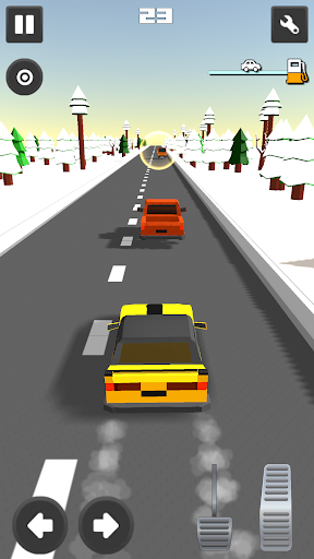 Travel through different terrains and areas such as snow, forest, and desert while enjoying the colorful and vivid HD graphics that enhance the racing experience. Look out for powerup balloons to provide you with a carefree, fast drive and crush other vehicles on your way for a limited time. But be careful when the car start blinking, as you'll need to avoid other vehicles again.