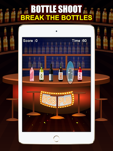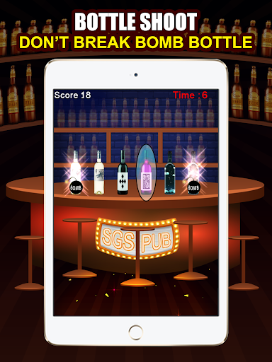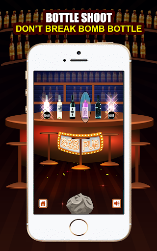 The game play is to crush bottles with the stone in a limited time of 60sec. Just swipe with your finger over the stone to different directions for breaking out all the bottles placed over table. Each round is tougher than the last. React quickly and hit all the bottles ,Try not to miss a single one. You can’t hit the bottles which are protected with a shield, try as fast as you can in the fixed amount of time. Bomb will be placed randomly if you hit it, you will loose the game. Gameplay is very simple.