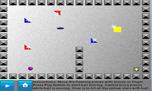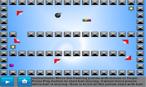 To do that, you must rearrange shapes and pieces on the board, so that the ball will bounce off of them.