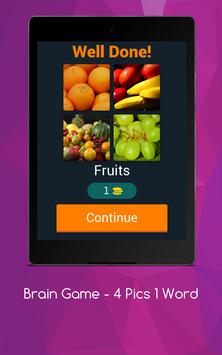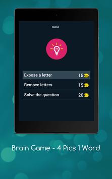 is a recommended Brain test/quiz game! 4 pictures are presented to you, and you have random letters available for you to guess a word that best describes the group or relation of the 4 pictures presented, hence the word, "4 pics 1 word".