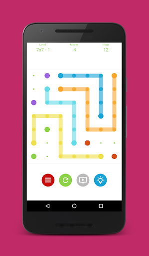 Connect two dots with the same color to match all dots. You should also fill the entire board dot to dot.