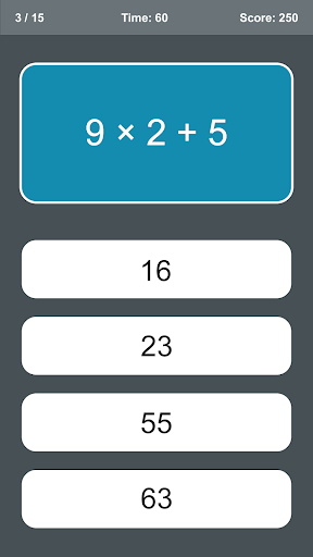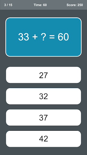 Solving math questions is important for the development of mathematical intelligence. You can improve your mathematical thinking and problem solving ability by practicing with math tests in the game.