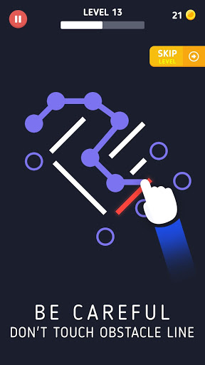 The goal is simple: just try to connect all the dots with only one touch, Be careful don't touch obstacle line.