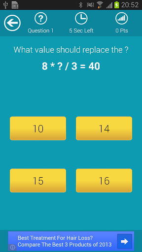- Math Quiz, Solve equations quickly within a tight time limit.