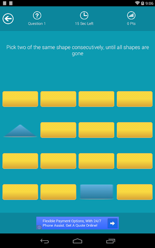 - Memory Games, Match the shapes memory game, find two of the same shapes consecutively, until all the shapes disappear. (you only have a limited number of lives!)