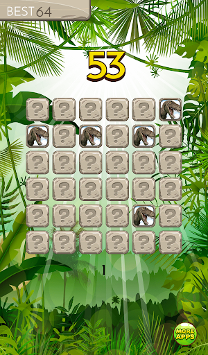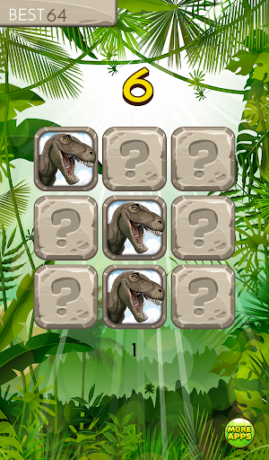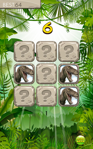 Can you memorize and recreate pattern of cards with dinosaur T-Rex on 3x3 board? Can you do it on 4x4, 5x5 and 6x6 board? You have only one second to memorize a pattern. Looks simple? But is quite difficult. So, take a challenge and test your memory in this addicting brain teaser!