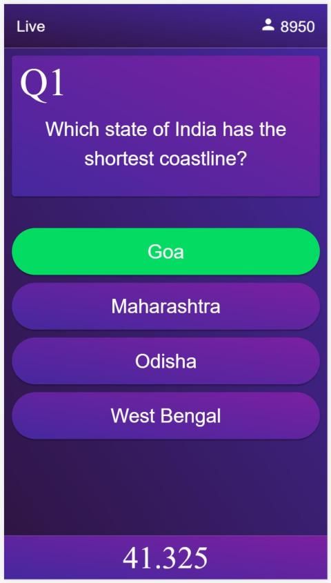 2. Depending upon your speed, points are given. You get to see your live ranking and scores with each progress and at the end of the quiz.