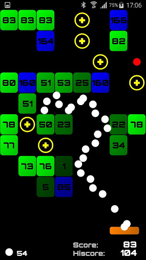 The rules of the game are simple: you have to throw your balls (you can have many balls) on the bricks to break them. The value shown on each brick corresponds to the number of hits needed to break the brick. So more balls you get, more quickly you break the bricks.