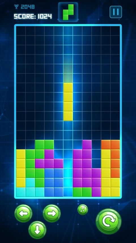 The object of the game is to keep the blocks from piling up to the top of the playing field.