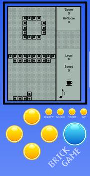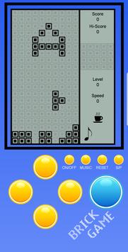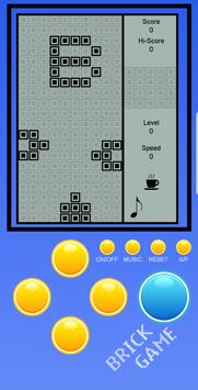 The game is carefully created to bring you the good experience about brick game. The picture and interface of the game is the same as the real brick game console. The sounds are similar to those on brick game devices as well.