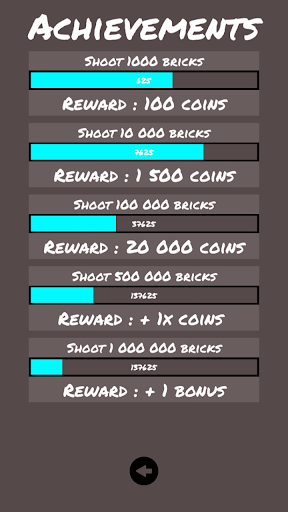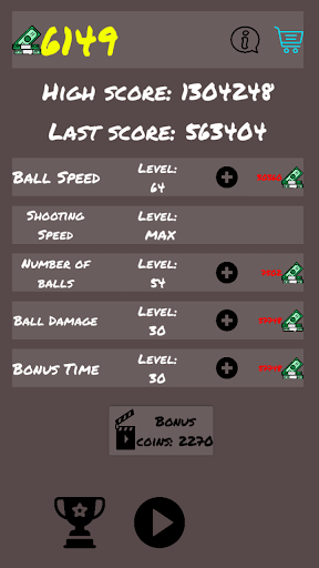 In Brick Shooter you can choose from two modes. The first is the normal mode, in which you try to achieve the highest score. The second mode is a real challenge, where you are up against an enemy shooter. The goal is to defeat your enemy. You can choose from three difficulties. If you defeat your enemy, you get his coins and score. In case of difficult difficulty, the coin and the score are multiplied by two. Brick Shooter is a perfect time killer.